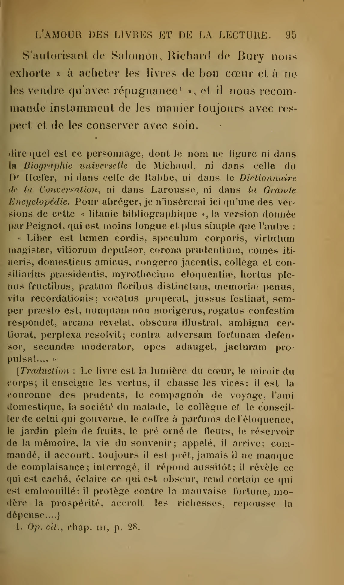 S’autorisant de Salomon, Richard de Bury nous exhorte « à acheter les livres de bon cœur et à ne les vendre qu’avec répugnance[095.1] », et il nous recommande instamment de les manier toujours avec respect et de les conserver avec soin.